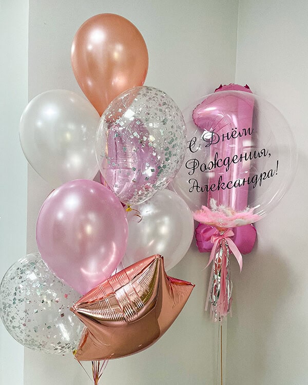 Шар с перьями и индивидуальной надписью